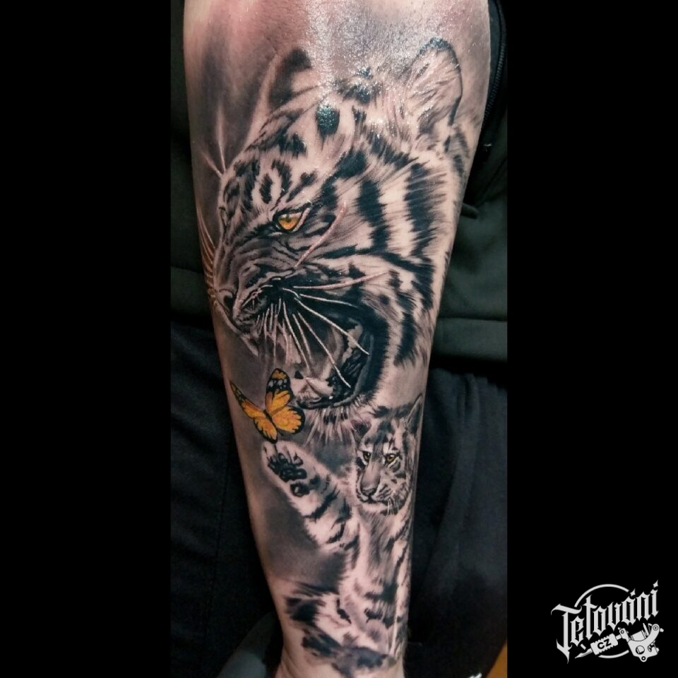 Tetování zvířata, tygr na předloktí