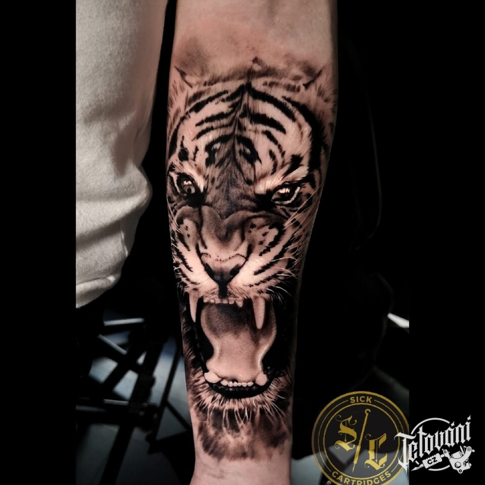 Tetování zvířata, tygr na předloktí