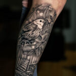 Tetování zvířata v lese, ježek a pták na noze