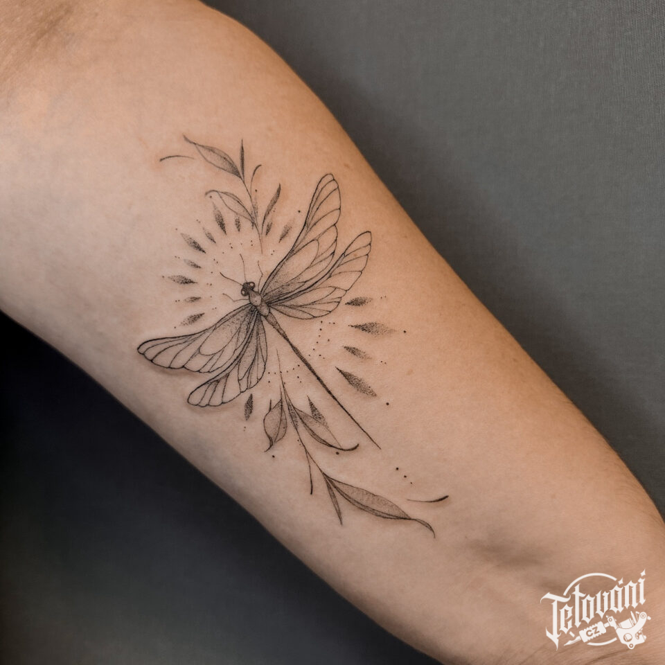 Tetování zvířata, vážka na předloktí