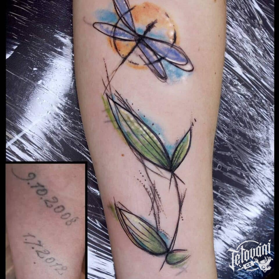 Tetování zvířata, vážka na předloktí