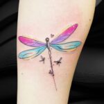 Tetování zvířata, vážka, srdce a květiny na předloktí
