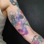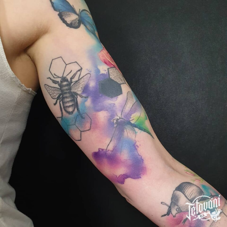 Tetování zvířata, vážka, včela a motýl na rukávu