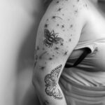 Tetování zvířata, včela a motýl, hvězdy na rukáv