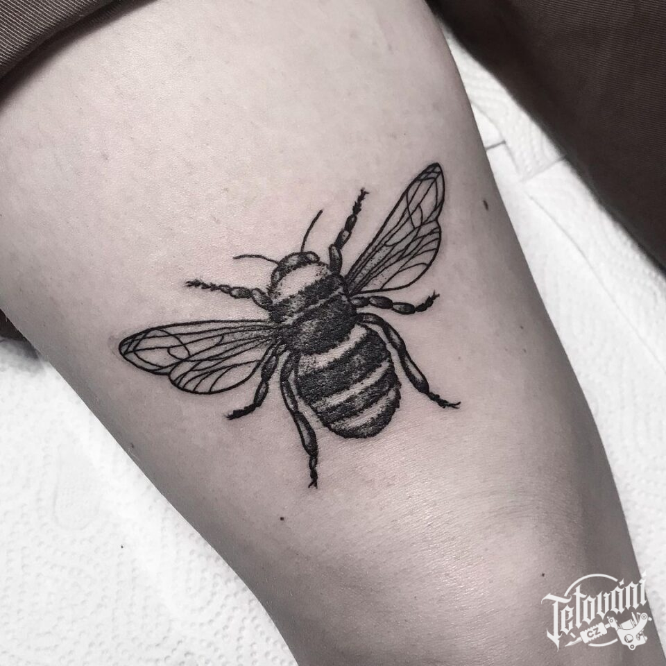 Tetování zvířata, včela na stehnu