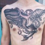 Tetování zvířata, velryba a chobotnice na hrudi