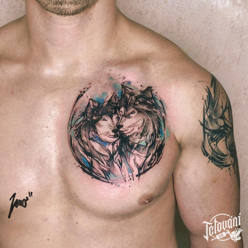 Tetování zvířata, vlci na hrudi
