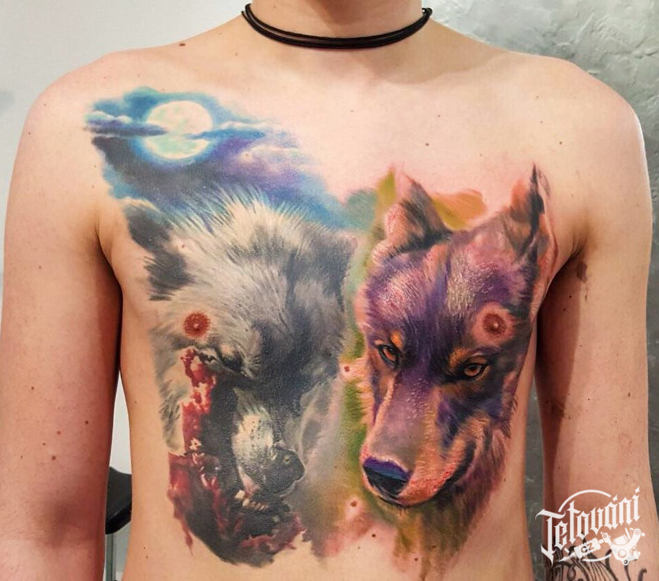 Tetování zvířata, vlci na hrudi