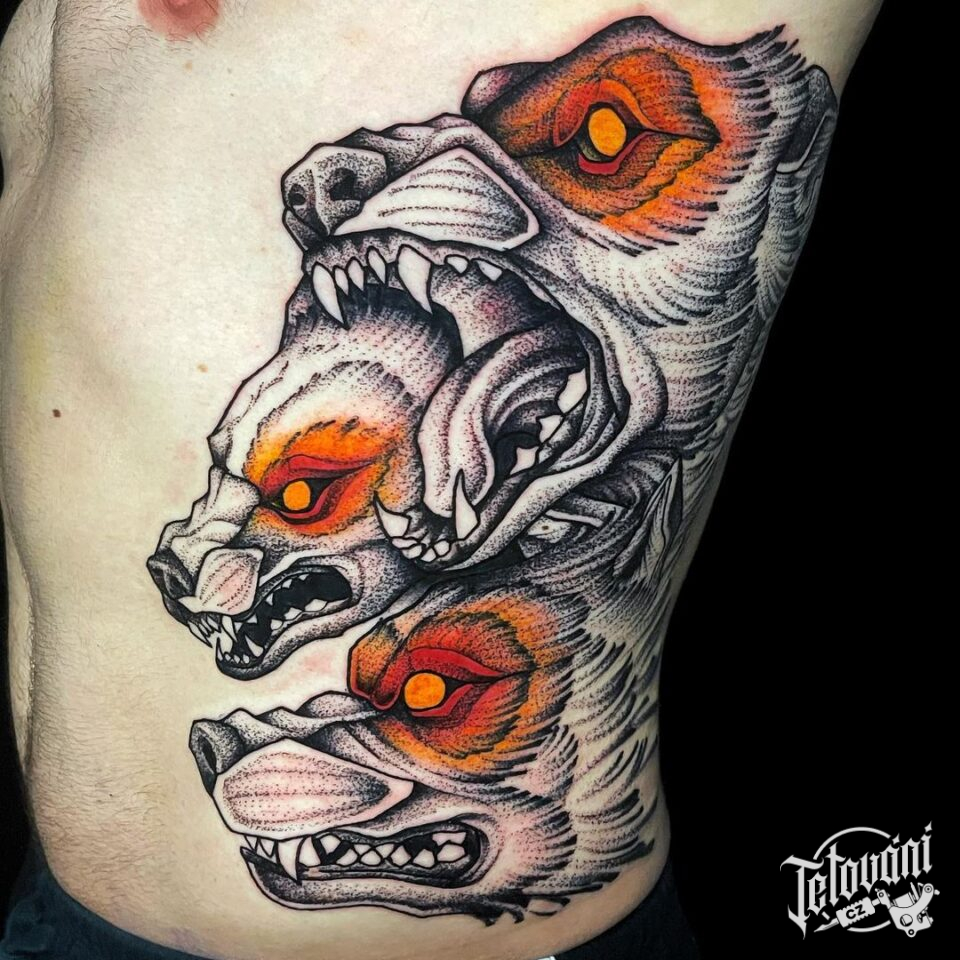 Tetování zvířata, vlci na žebrech