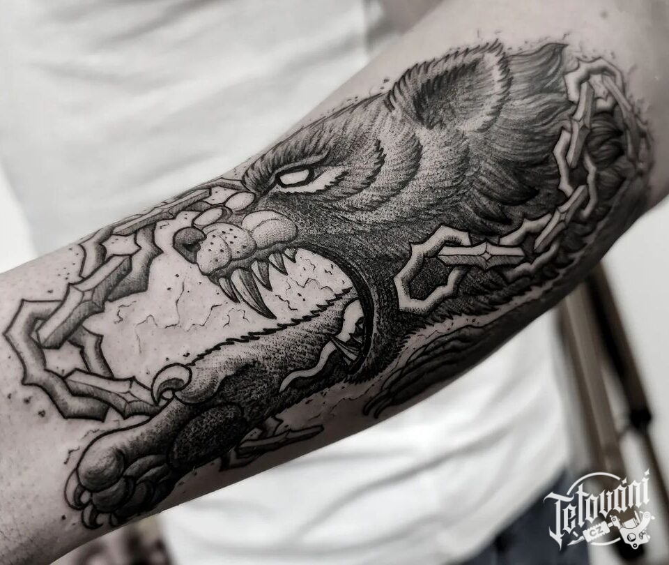 Tetování zvířata, vlk Fenrir na předloktí