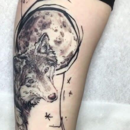 Tetování zvířata, vlk na boku stehna