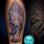 Tetování zvířata, vlk na lýtko