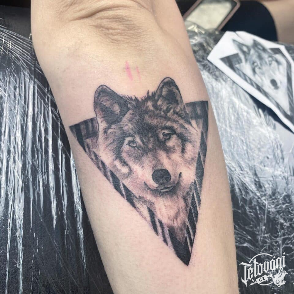 Tetování zvířata, vlk na předloktí