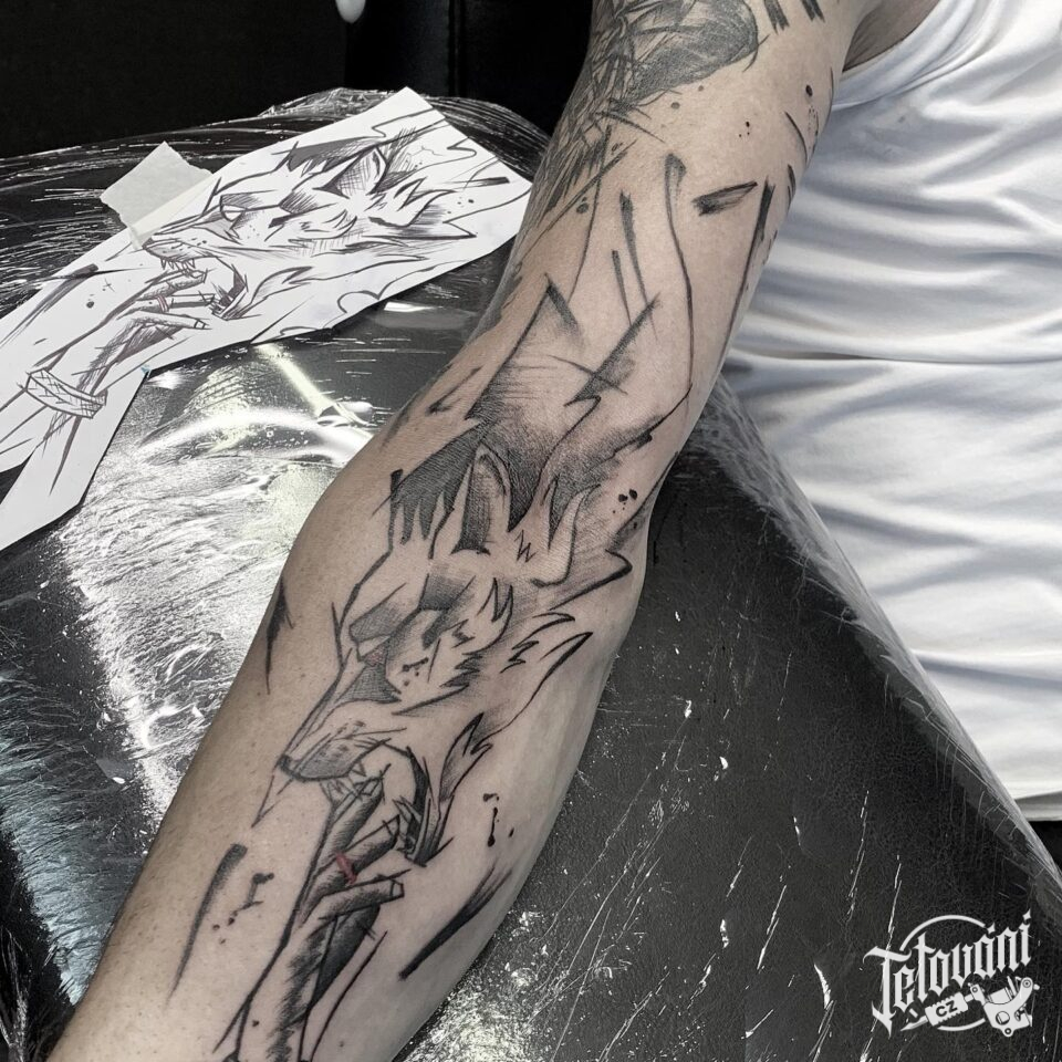 Tetování zvířata, vlk na rukávu