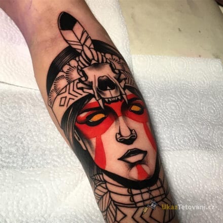 Tetování zvířata, vlk, orel a indiánka na rukáv