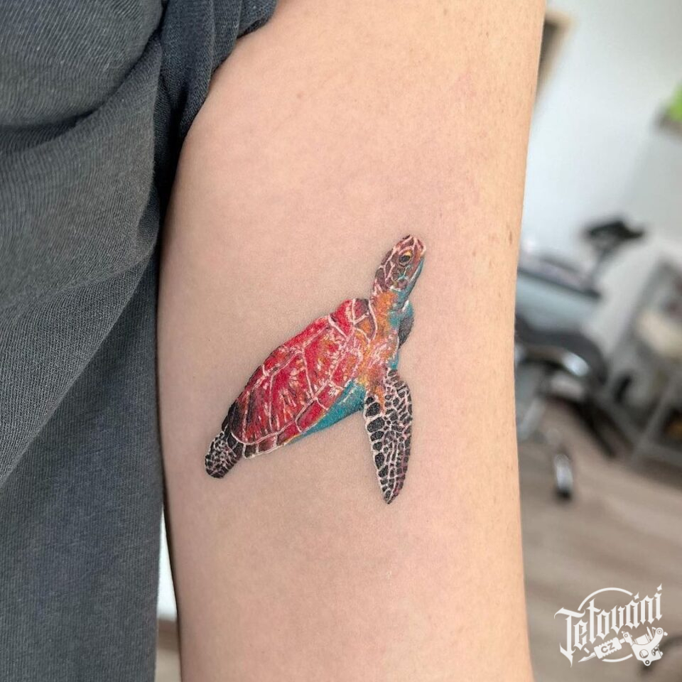Tetování zvířata, želva na paži