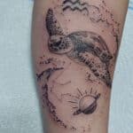 Tetování zvířata, želva, znamení zvěrokruhu, planeta a symbol moře na předloktí