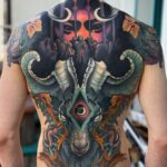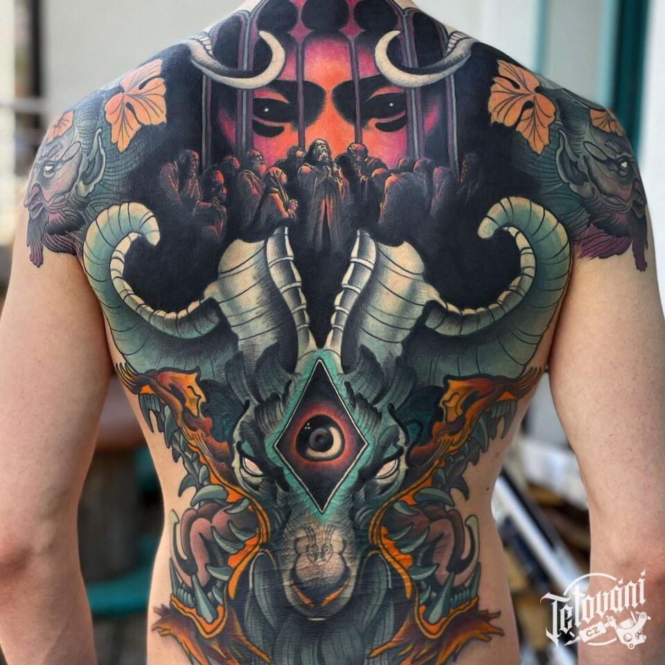 Tetování zvířata, znamení zvěrokruhu, kozoroh, oko, náboženství na zádech