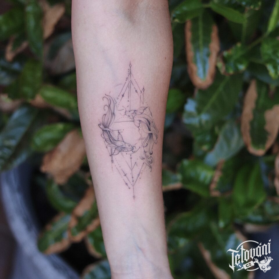 Tetování zvířata, znamení zvěrokruhu, ryby na předloktí