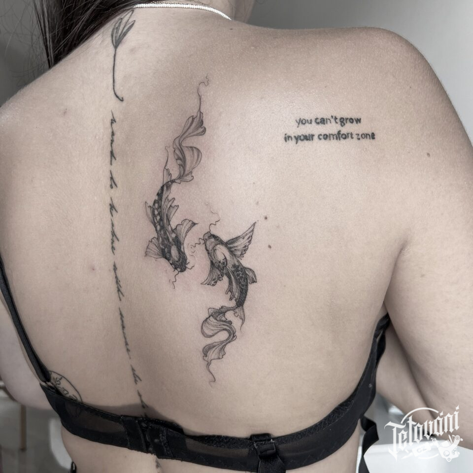 Tetování zvířata, znamení zvěrokruhu, ryby na zádech