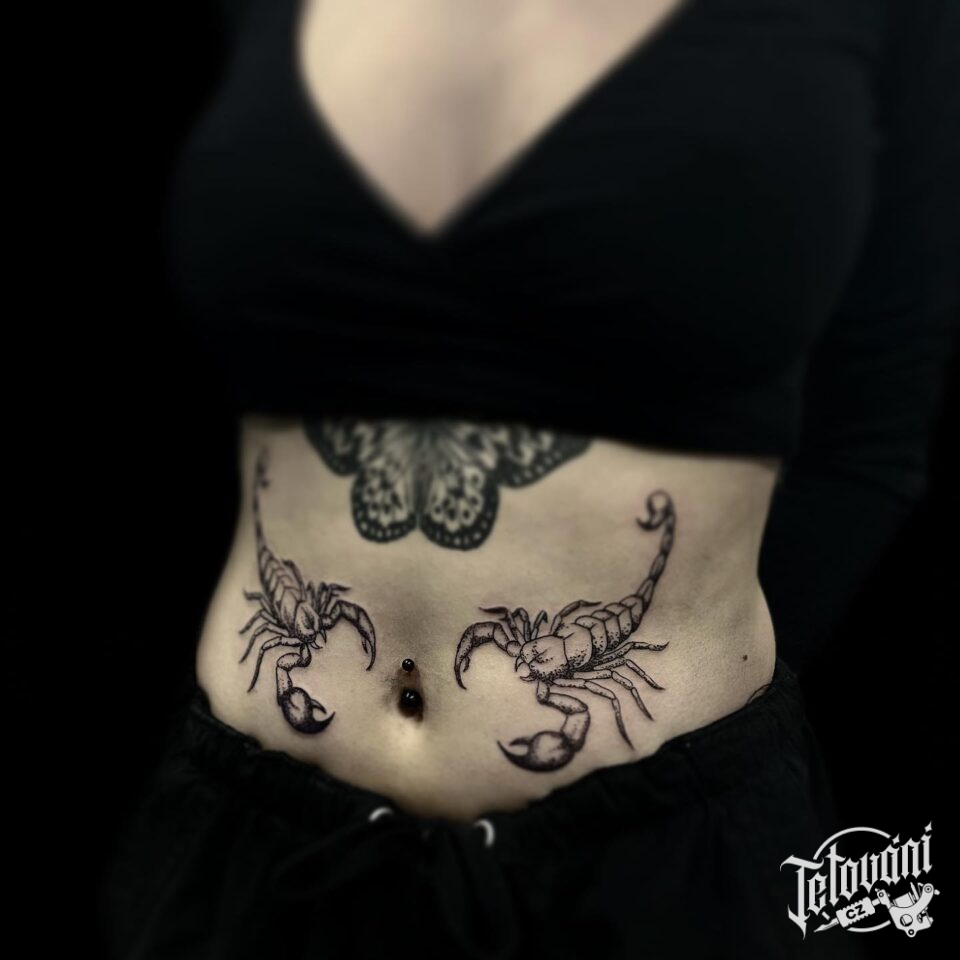 Tetování zvířata, znamení zvěrokruhu, štír, škorpion na břichu