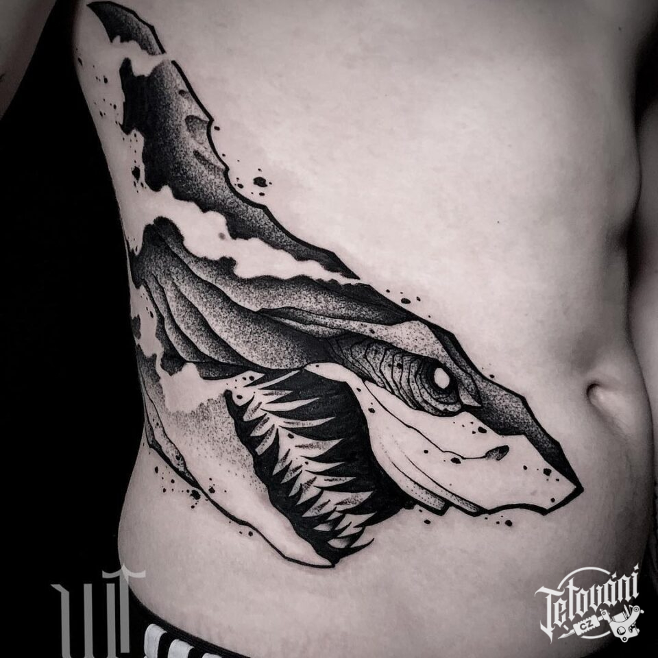 Tetování zvířata, žralok na břichu