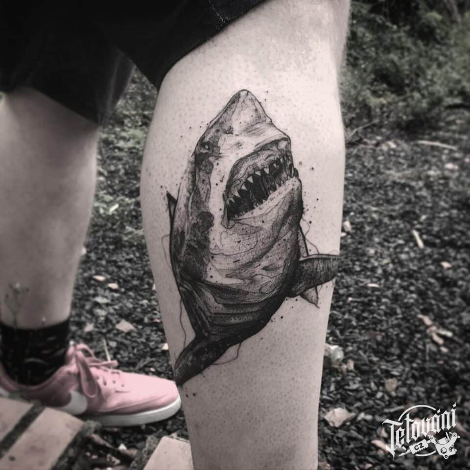 Tetování zvířata, žralok na lýtku