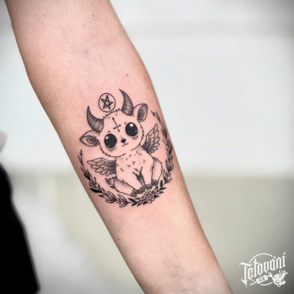 Tetování zvířátko, andílek s ďáblíkem na předloktí