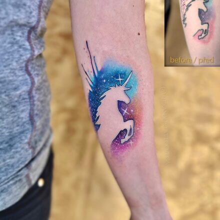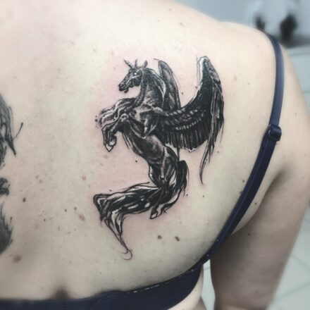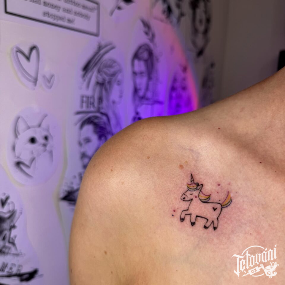Tetování zvířátko, jednorožec pod klíční kostí