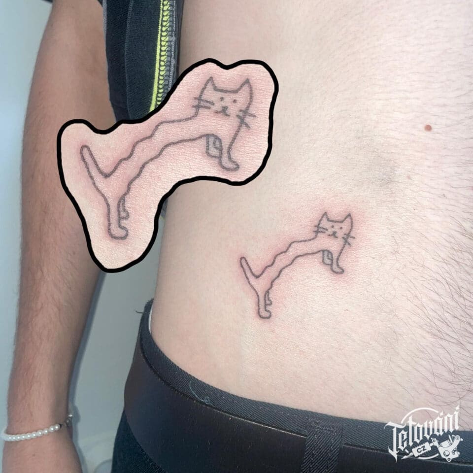Tetování zvířátko, kočka na břichu