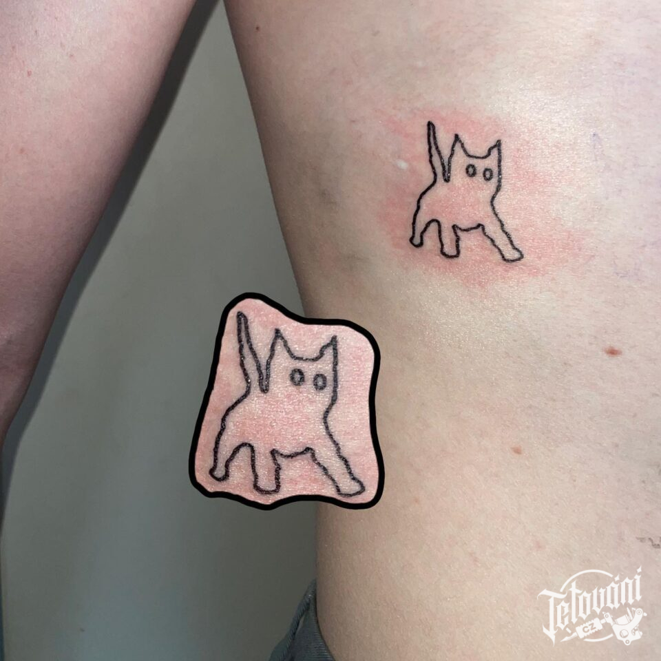 Tetování zvířátko, postavička, kočka na žebrech