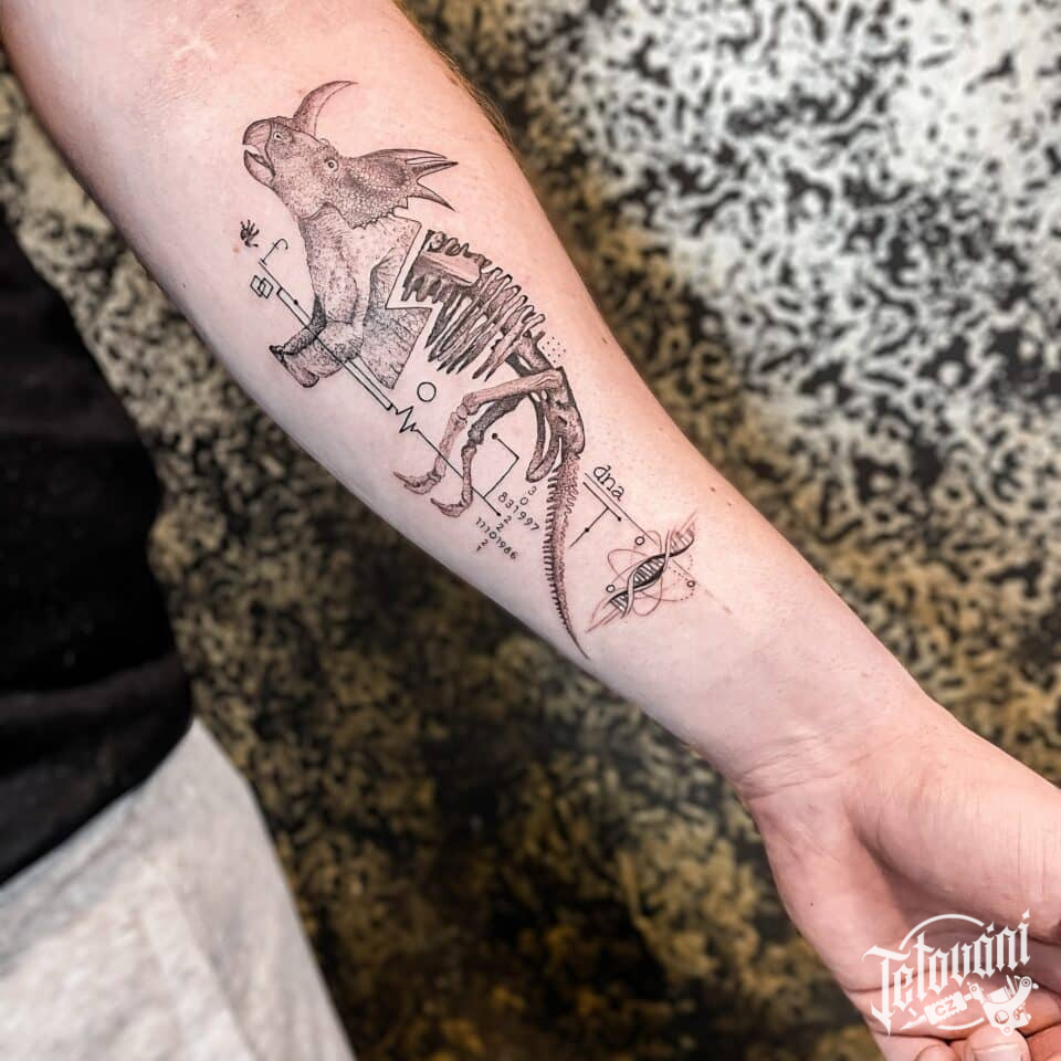 Tetování zvíře a jeho kostra, symbol života na předloktí