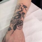 Tetování zvíře a květina, had s růží na předloktí