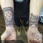 Tetování zvíře a květina, lev a růže na předloktí