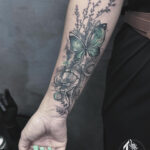 Tetování zvíře a květiny, vlčí mák na předloktí