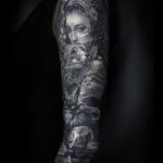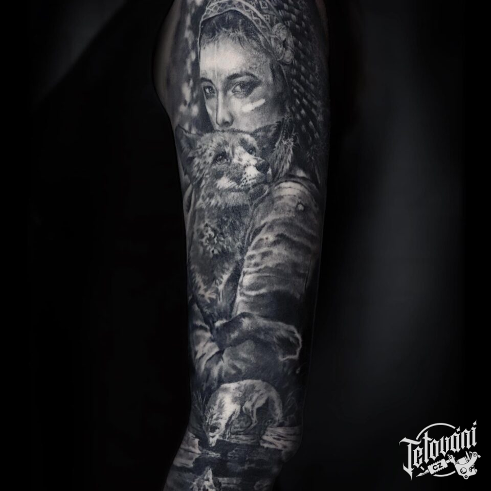Tetování zvíře a portrét, indiánka s liškou, rukáv