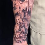 Tetování zvíře a příroda, medvědi a hory na předloktí