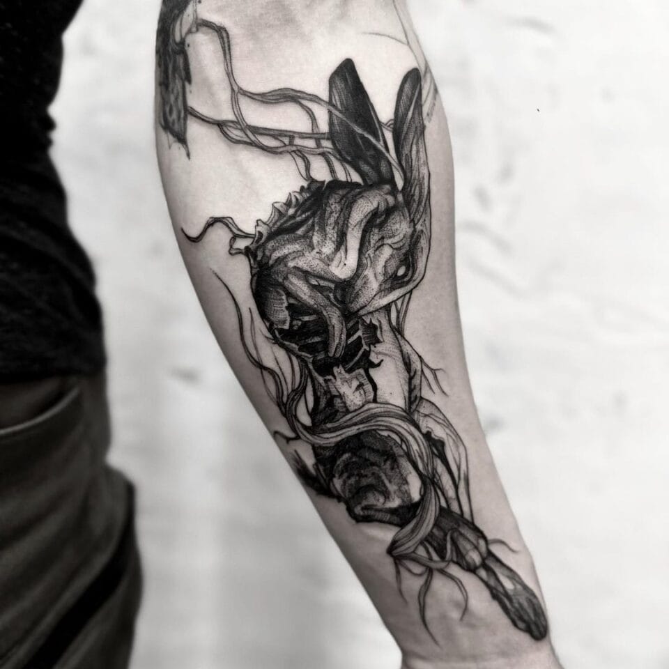 Tetování zvíře a větvička na předloktí