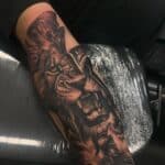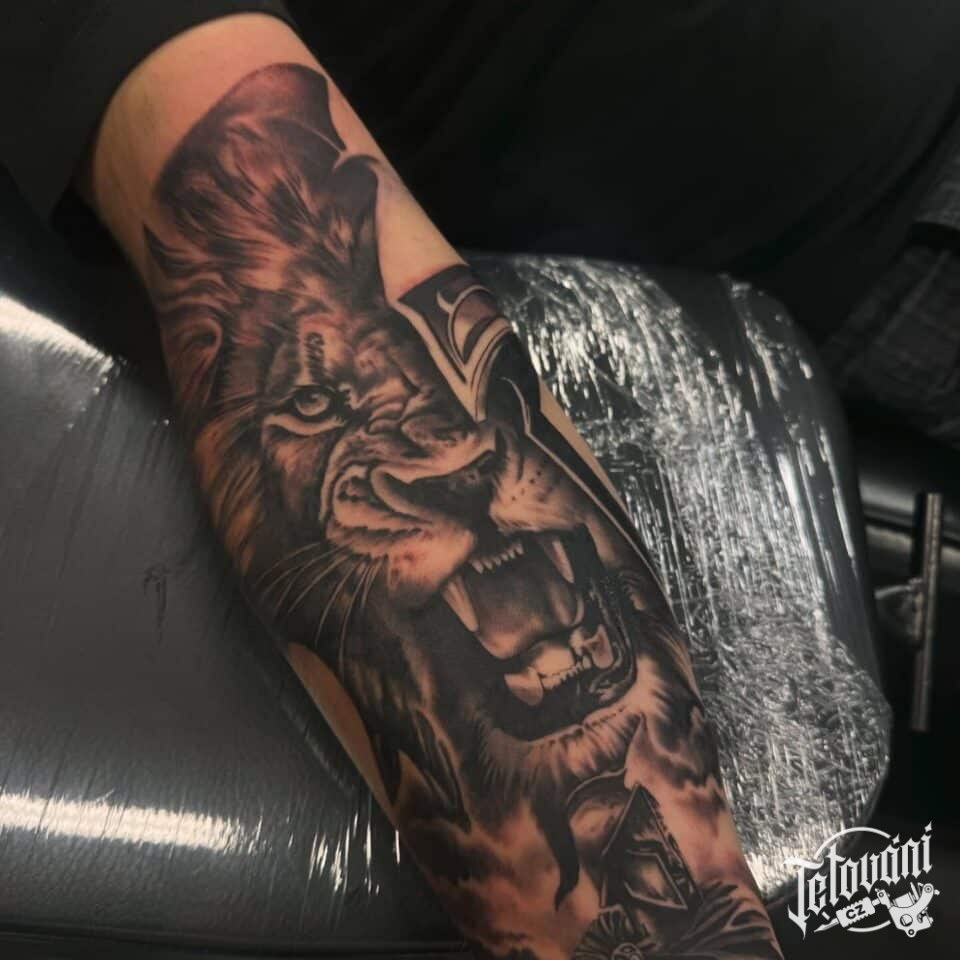 Tetování zvíře a znamení zvěrikruhu lev na předloktí