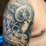 Tetování zvíře a znamení zvěrokruhu beran a štír na rameno