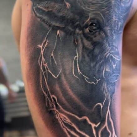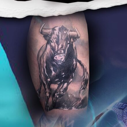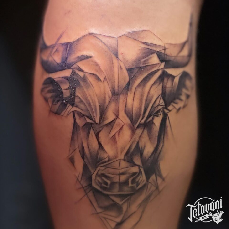 Tetování zvíře a znamení zvěrokruhu býk na lýtko