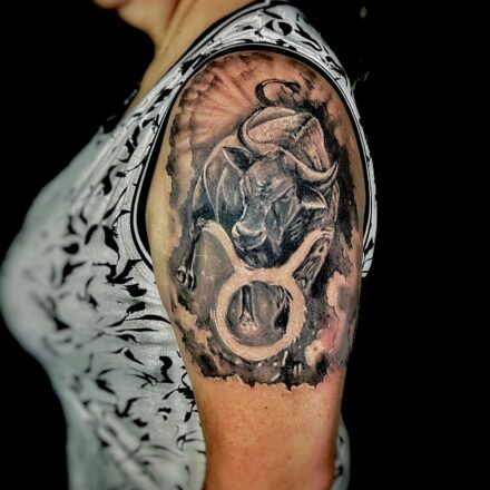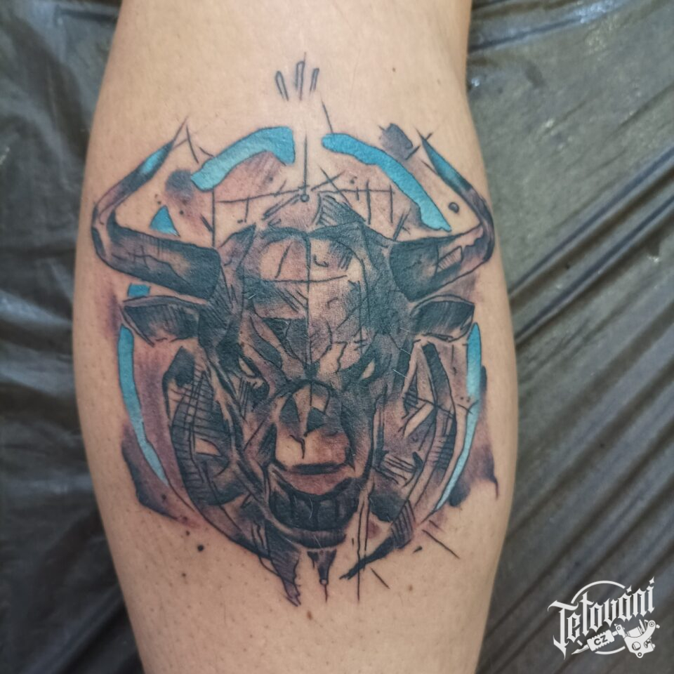 Tetování zvíře a znamení zvěrokruhu býk na lýtko