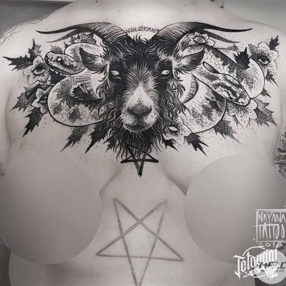 Tetování zvíře a znamení zvěrokruhu kozoroh s hadem na hrudník