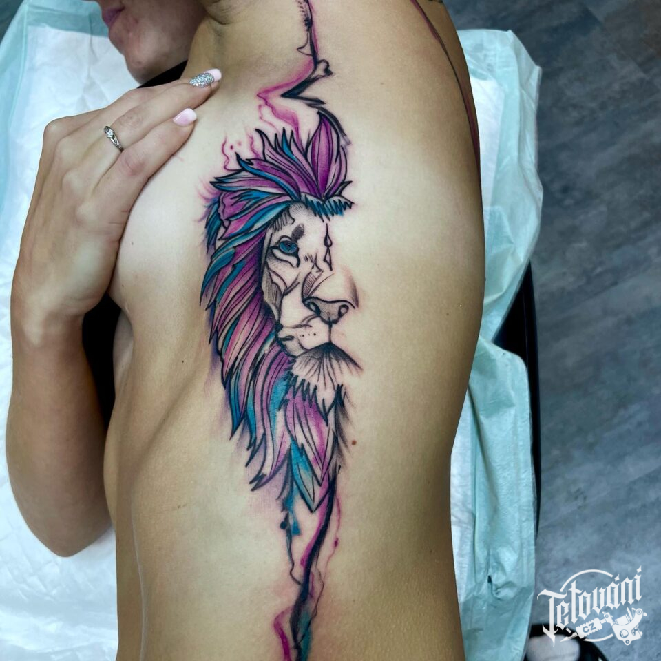 Tetování zvíře a znamení zvěrokruhu lev na bok