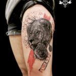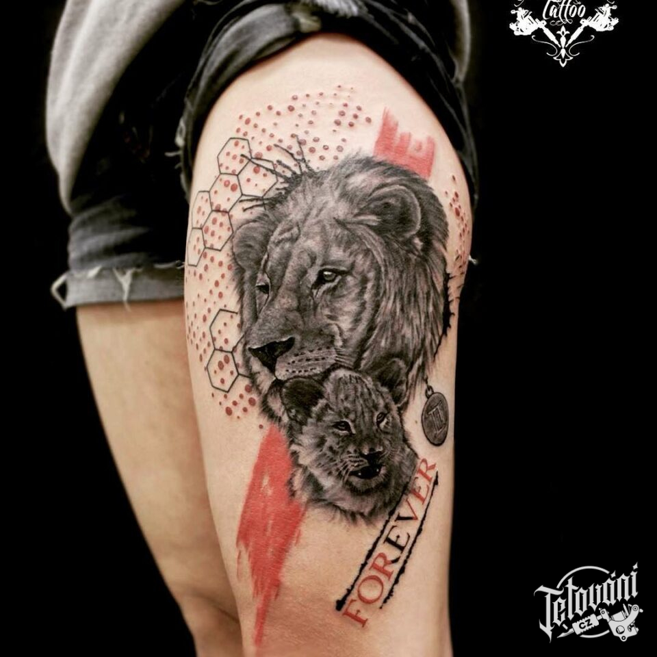 Tetování zvíře a znamení zvěrokruhu lev na bok stehna