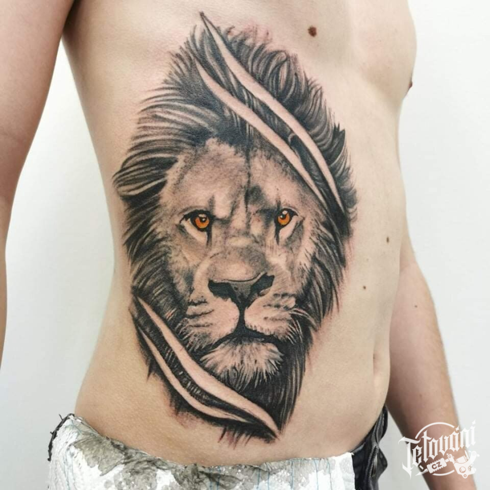 Tetování zvíře a znamení zvěrokruhu lev na bok