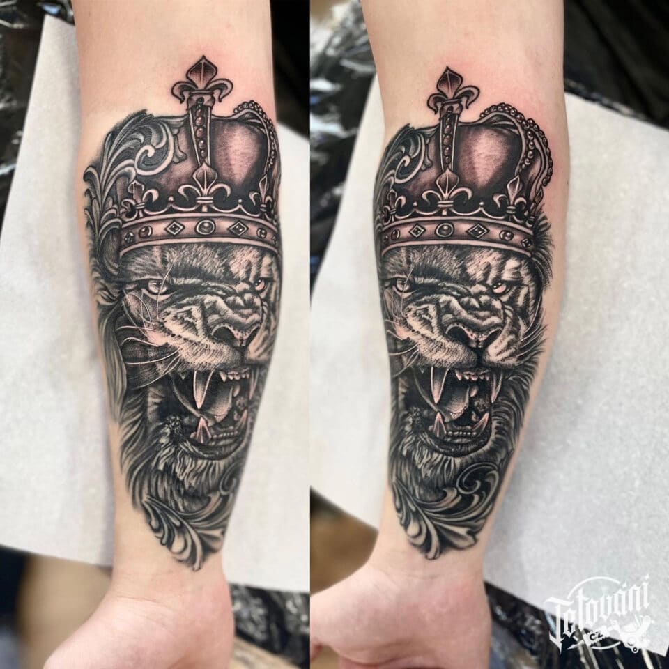 Tetování zvíře a znamení zvěrokruhu lev na předloktí
