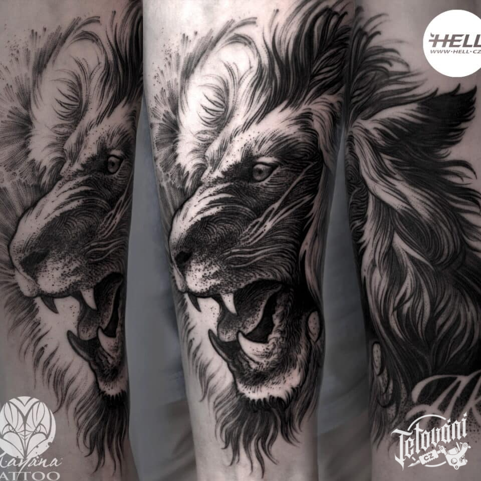 Tetování zvíře a znamení zvěrokruhu lev na předloktí