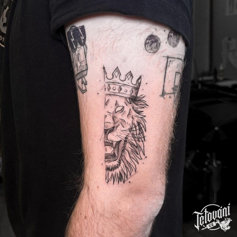 Tetování zvíře a znamení zvěrokruhu lev na rameno