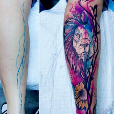 Tetování zvíře a znamení zvěrokruhu lev na rameno